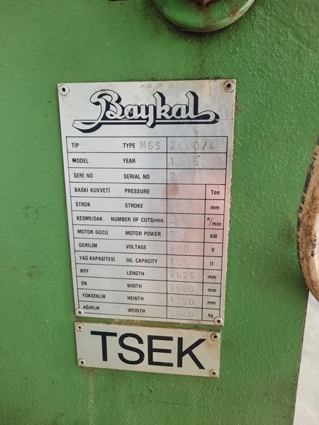 Tüm bakımları yapılmış ve çalışır durumdaki Baykal 2.5 Metre 4 mm Giyotin Makas, firmamız garantisiyle satışa sunulmuştur. Hemen üretime uygun, yüksek hassasiyetli ve uzun ömürlü bir makinedir.